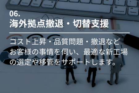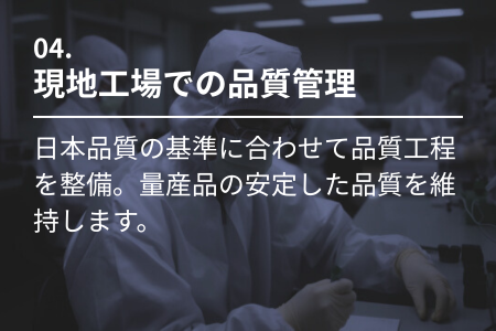 日本企業様向けに、製造の各工程を丁寧にサポートします。